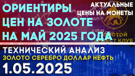 Ориентиры цен на золоте на май 2025 года. Анализ рынка золота, серебра, нефти, доллара 01.05.2025 г.