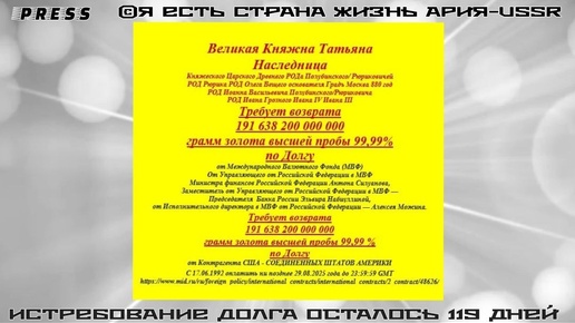 ИСТРЕБОВАНИЕ ДОЛГА Осталось 119 дней