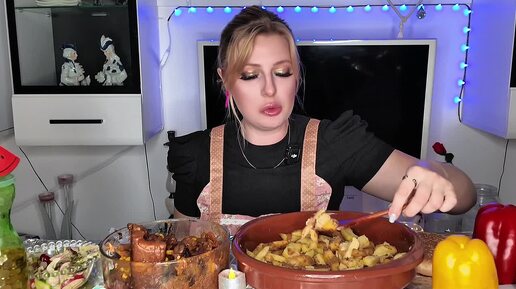 МУКБАНГ. История моей жизни часть 3. БЫВШИЕ. Обжор пупочками и мясиком. Картофан. #mukbang #asmr