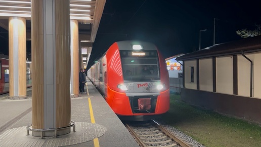 Электропоезд "Ласточка" ЭС2Г - 152 на ст.Зеленоградск-Новый, апрель 2025 года