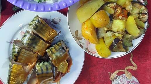 Картошка с 🍆 по-деревенски 🍽 Салат и рыбка 🤗 Рубрика Готовим вместе 👩🍳 Мукбанг ☕️ еда День не задался с утра 🥺