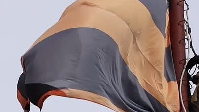 В Нижневартовске водрузили на многоэтажку огромный стяг с Георгиевской лентой!