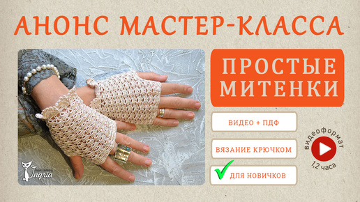 Анонс мастер-класса по вязанию. Простые митенки крючком.
