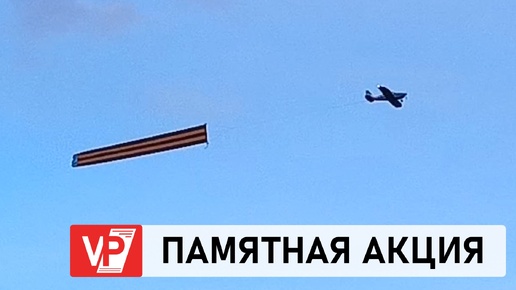 НАД ЦЕНТРОМ ВОЛГОГРАДА ПРОЛЕТЕЛ САМОЛЕТ С ОГРОМНОЙ ГЕОРГИЕВСКОЙ ЛЕНТОЙ