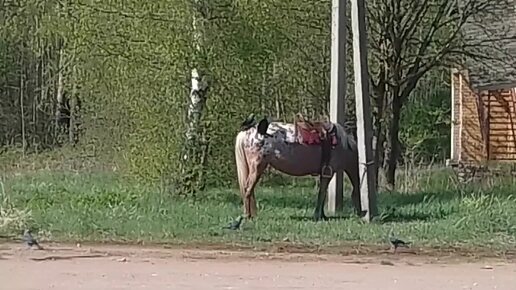 Галки чистят лошадь