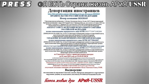 Депортация иностранцев ПРАВИТЕЛЬСТВО РОССИЙСКОЙ ФЕДЕРАЦИИ Голоса живых душ АРиЯ -USSR
