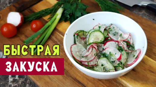 Простая холодная закуска - рецепт вкусного салата из огурца с редисом