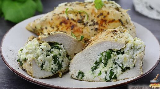 Спрячем начинку в "кармашки". Куриное филе с сыром, творогом и шпинатом