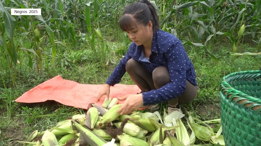 Дорис 48. Собирает кукурузу, поливает навозом растения