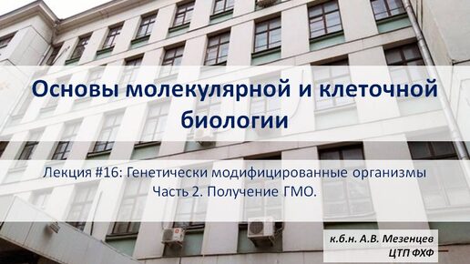Основы молекулярной и клеточной биологии (2024) Лекция 16 ГМО Часть 2 Получение ГМО