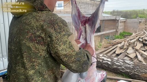 Режем барашка на шашлык. Самый удобный нож Вектор-3 из стали 9ХС