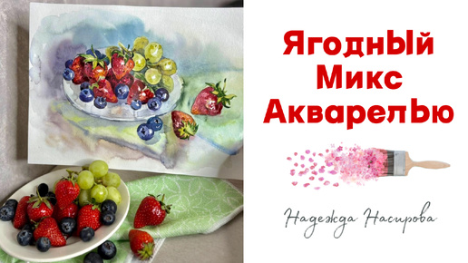 Рисую ягоды акварелью (клубника, голубика, виноград) Натюрморт, этапы. #процесс #акварель #акварельмастеркласс