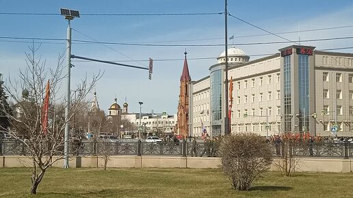 Колокольный звон и начало первой репетиции Парада Победы в Иркутске.