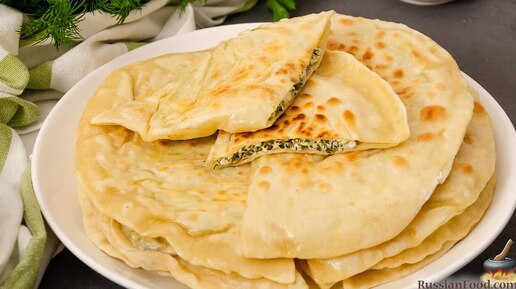 Тонкие лепёшки из простого теста. Кутабы с творогом и зеленью