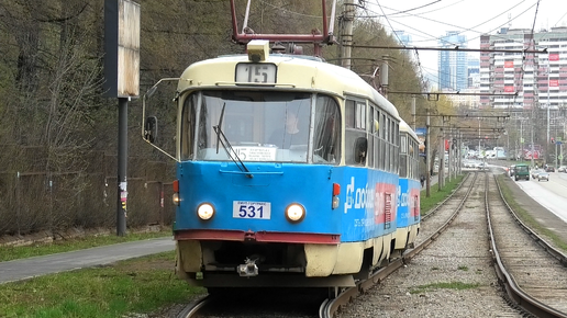 Трамвай Екатеринбурга Tatra T3SU СМЕ борт. №531/532 маршрут №15 прибывает на остановку "Ювелирная"