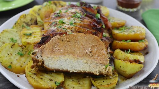 Мясо с любимым гарниром. Свиная корейка с беконом