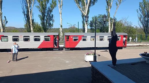 Отправление поезда со станции «Пионерская» Донецкой детской железной дороги. Май 2025