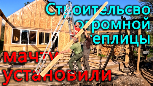 Установили огромную мачту. Строим теплицу площадью 58 квадратных метров.