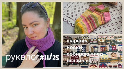 Руквлог№11/25: Шарфик/ Носки/ собираю Плед/ вышиваю