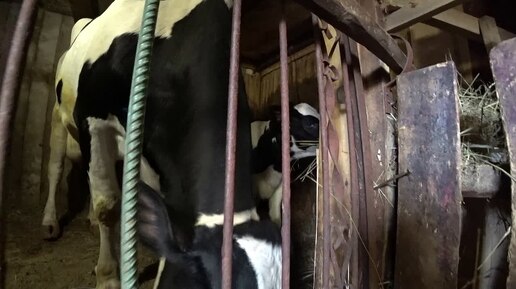 Теленок в стойле вместе с коровой