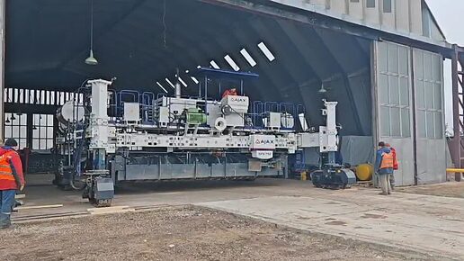 Выезд бетоноукладчика из ангара
