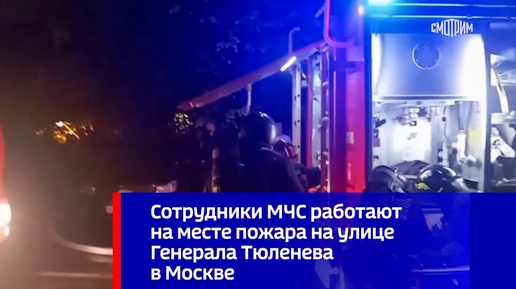 Сотрудники МЧС работают на месте пожара на улице Генерала Тюленева в Москве