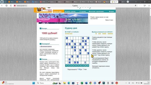 Судоку дня (5*) с сайта jscan от 05.05.2025