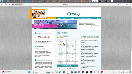 Судоку дня (3*) от 05.05.2025 из сайта jscan