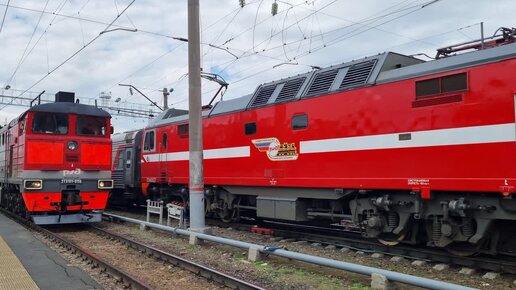 В оригинальной заводской окраске, электровоз ЭП2К-094 отправляется со скорым поездом 118 Адлер - Самара
