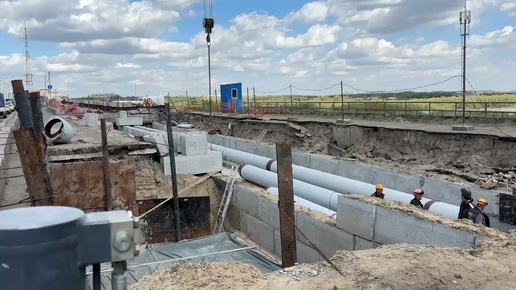 На мосту 60-летия ВЛКСМ активно ведутся работы по укладке теплосетей
