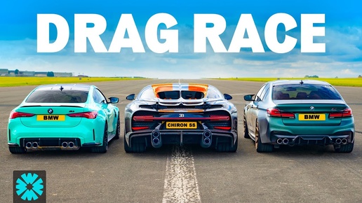 Драг гонка: Bugatti Chiron Super Sport против 1000-сильных BMW M4 и М5 ( Carwow Drag )
