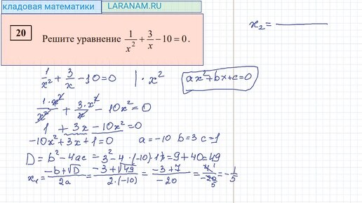 ОГЭ 20 Решите уравнение 1/x2-3/x-10=0 математика