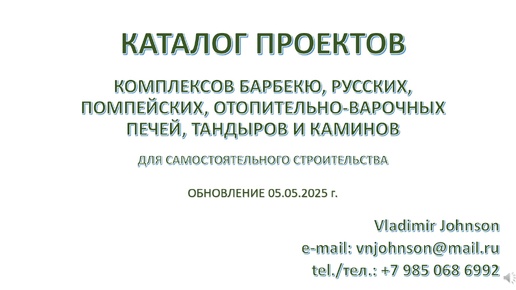 КАТАЛОГ ПРОЕКТОВ барбекю, русских, помпейских печей, тандыров и каминов. Обновление от 05.05.2025 г.