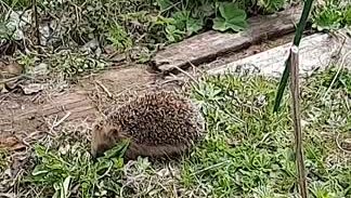 6 мая ёжик вышел погулять под пение птиц и жужжание шмеля.