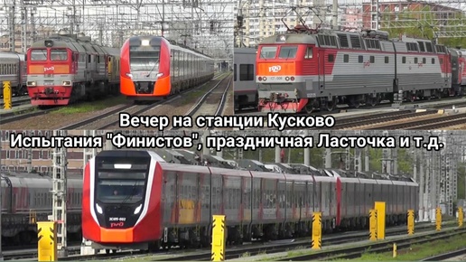 Вечер на станции Кусково. Испытания новых "Финистов", праздничная "Ласточка" и другие поезда.