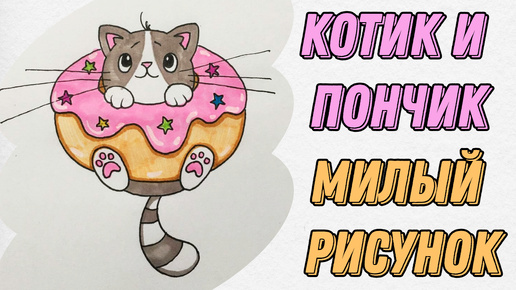 Как нарисовать милого котика с пончиком | Простой рисунок