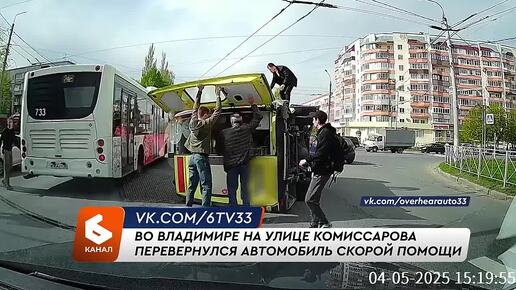 Во Владимире на улице Комиссарова перевернулся автомобиль скорой помощи