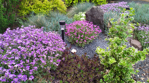 Апрельский палисадник. Красивое цветение почвопокровных растений.