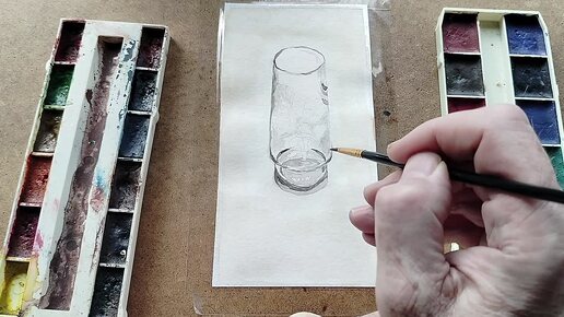 Акварель - Бокал из чёрного стекла с цветами.