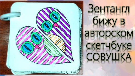 Зентангл Бижу в авторском скетчбуке Совушки