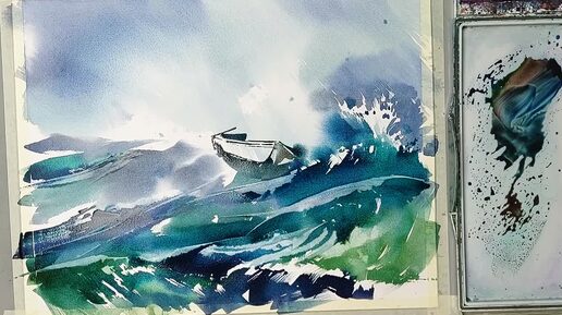 Море волнуется, путь домой, быстрая акварель