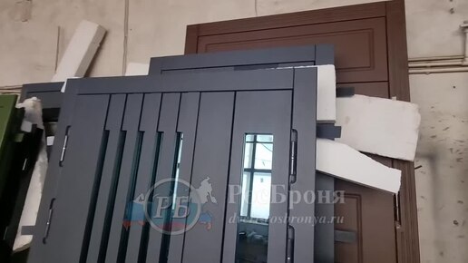 Входная дверь металлическая двустворчатая со стеклом (серая 7024,7016) С-68