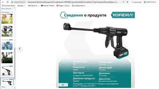 Аккумуляторная мойка высокого давления YOFiDRA