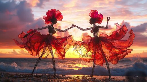 Магия на закате: Маки превращаются в страстных танцовщиц на берегу океана | Потрясающая симфония природы