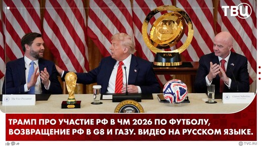 Трамп про участие РФ в ЧМ 2026 по футболу, возвращение РФ в G8 И Газу. Видео на русском языке.