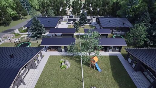 Визуализация мини-квартала из четырёх идентичных домов 214 кв. м.