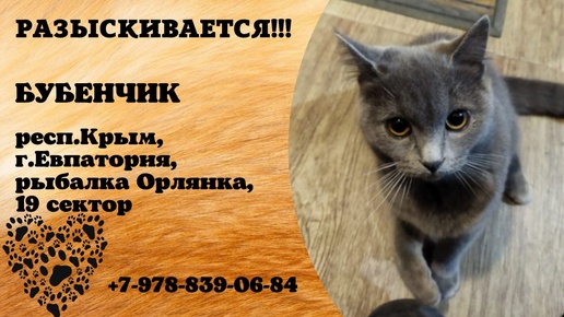 Пропал кот! Бубенчик, Крым Евпатория