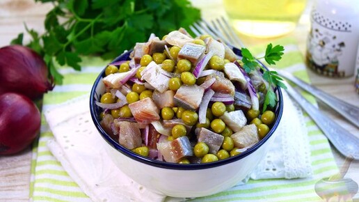 Закуска проще простого. Салат из сельди и зелёного горошка