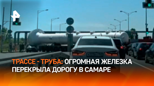 Огромная труба перегородила дорогу в Самаре — ее не смогли довезти до места назначения