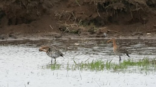 Большие веретенники в дождь.